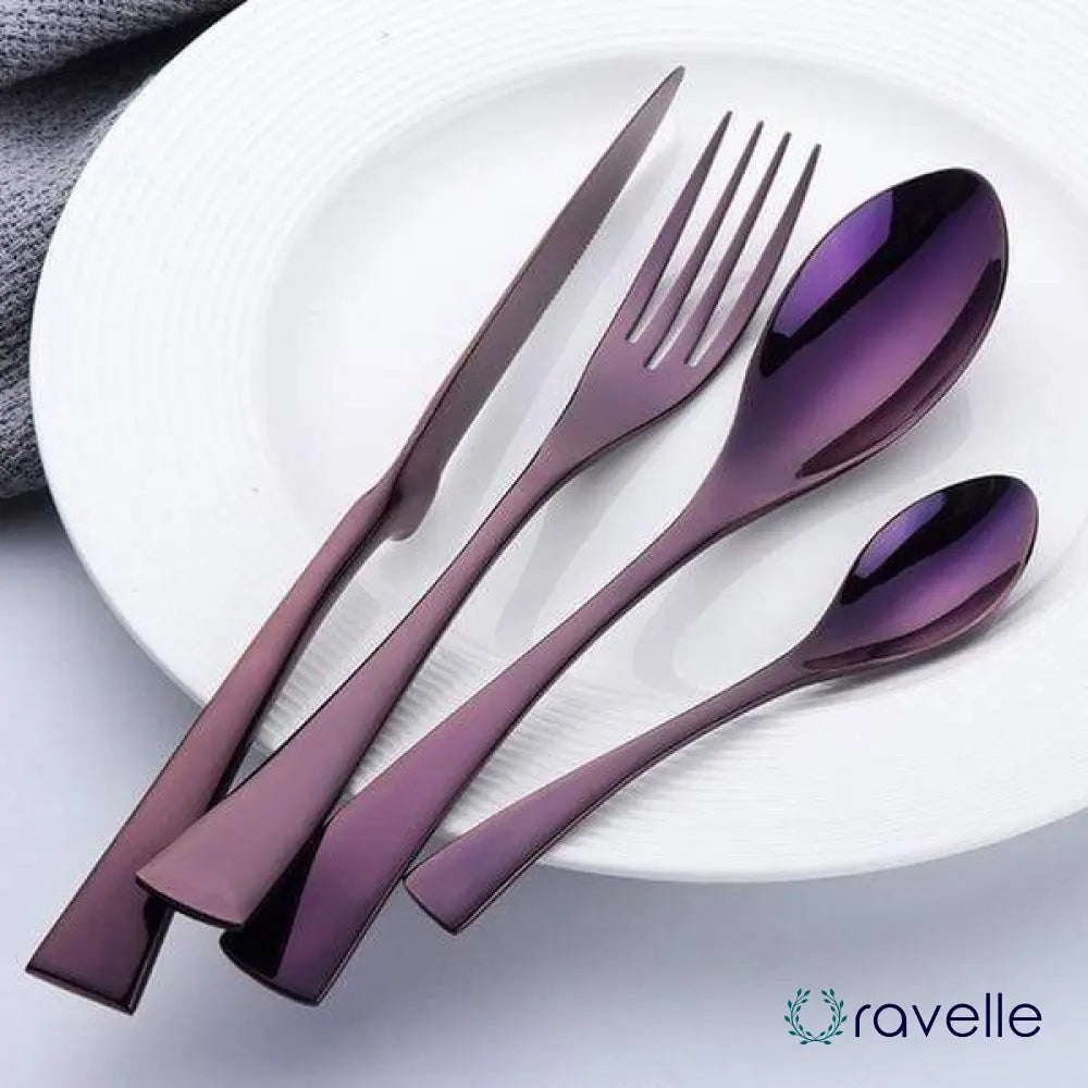 De GREECE Bestekset, gemaakt van 100% geplatineerd roestvrij staal, combineert verfijnde kunst met functionaliteit. Deze set is perfect voor wie zijn eetervaring wil transformeren met een unieke en stijlvolle uitstraling. Verkrijgbaar in diverse opvallende kleuren zoals zwart, goud, blauw, roségoud, zilver en paars, voegt deze set een vleugje luxe toe aan elke maaltijd.