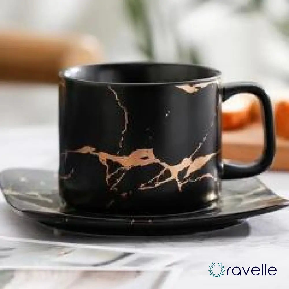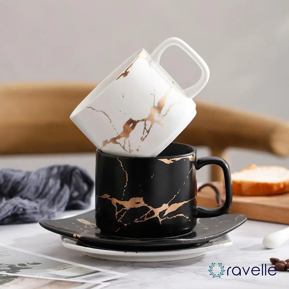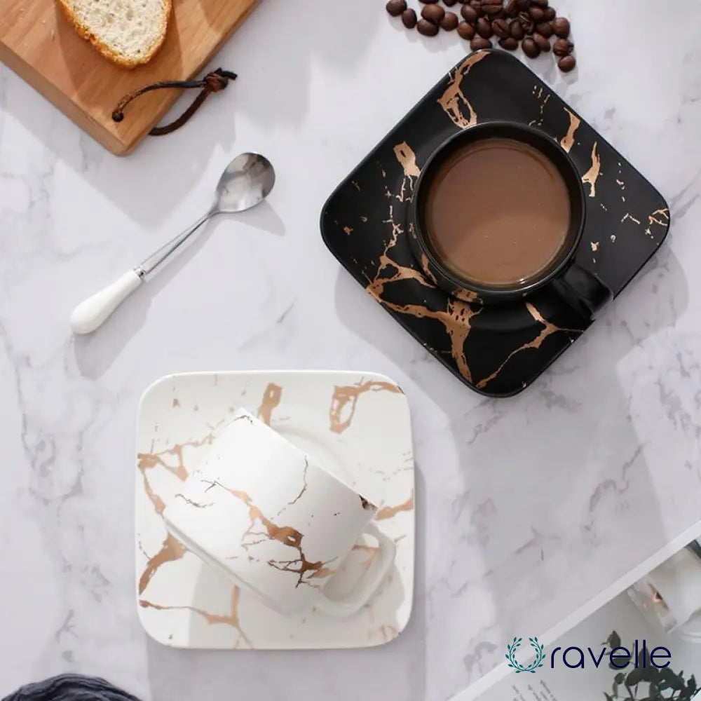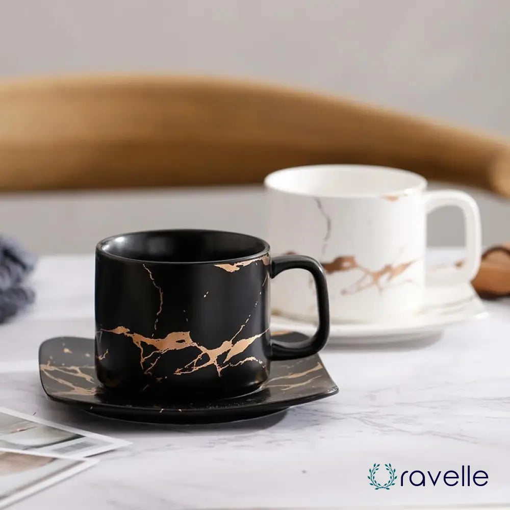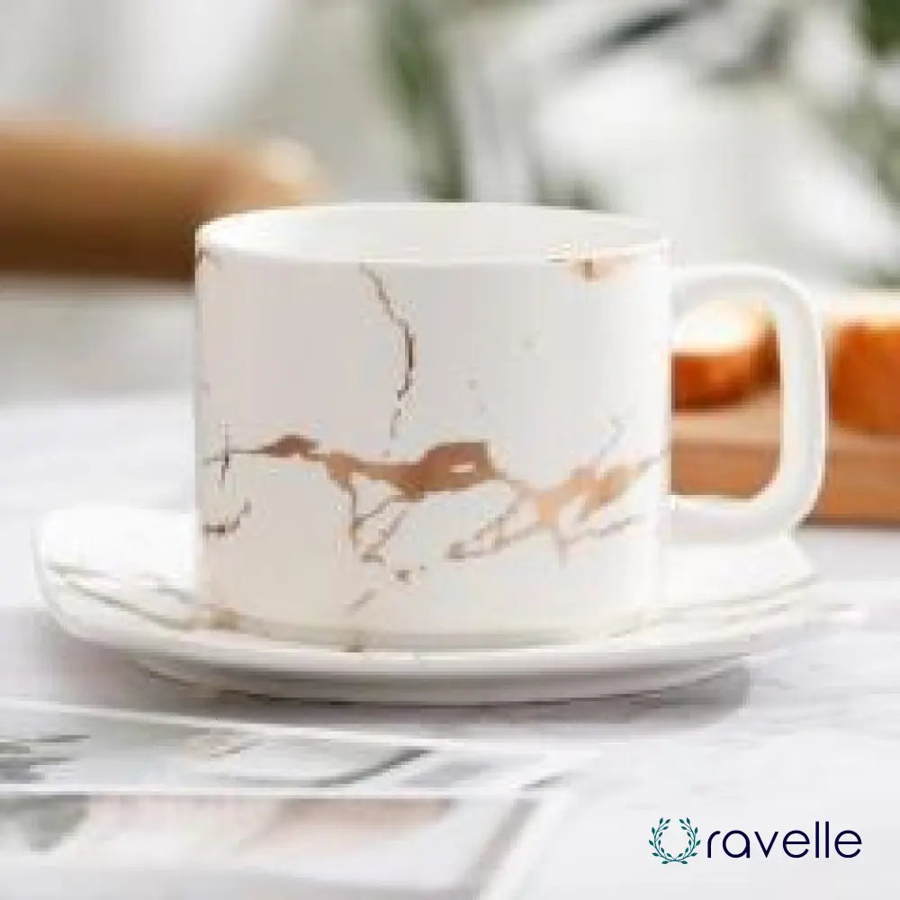 LIGHTNING - Luxe theekopje met schotel en vergulde accenten