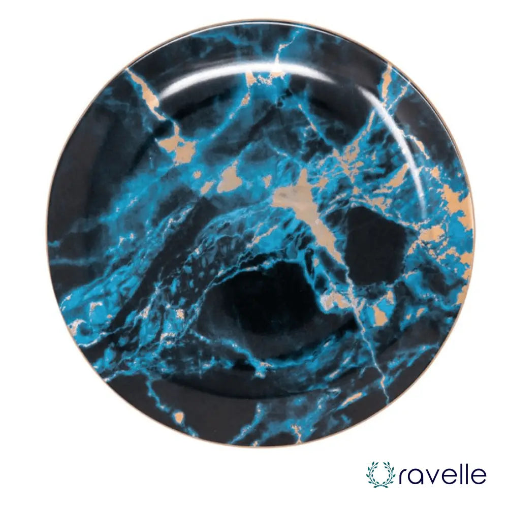 De MICHELANGELO borden set combineert verfijnde marmerprints met fijn porselein voor een stijlvolle toevoeging aan je servies. Deze perfect ronde borden met subtiel vergulde hoeken zijn ideaal voor het serveren en genieten van diverse gerechten, en voegen een vleugje luxe toe aan elke maaltijd.