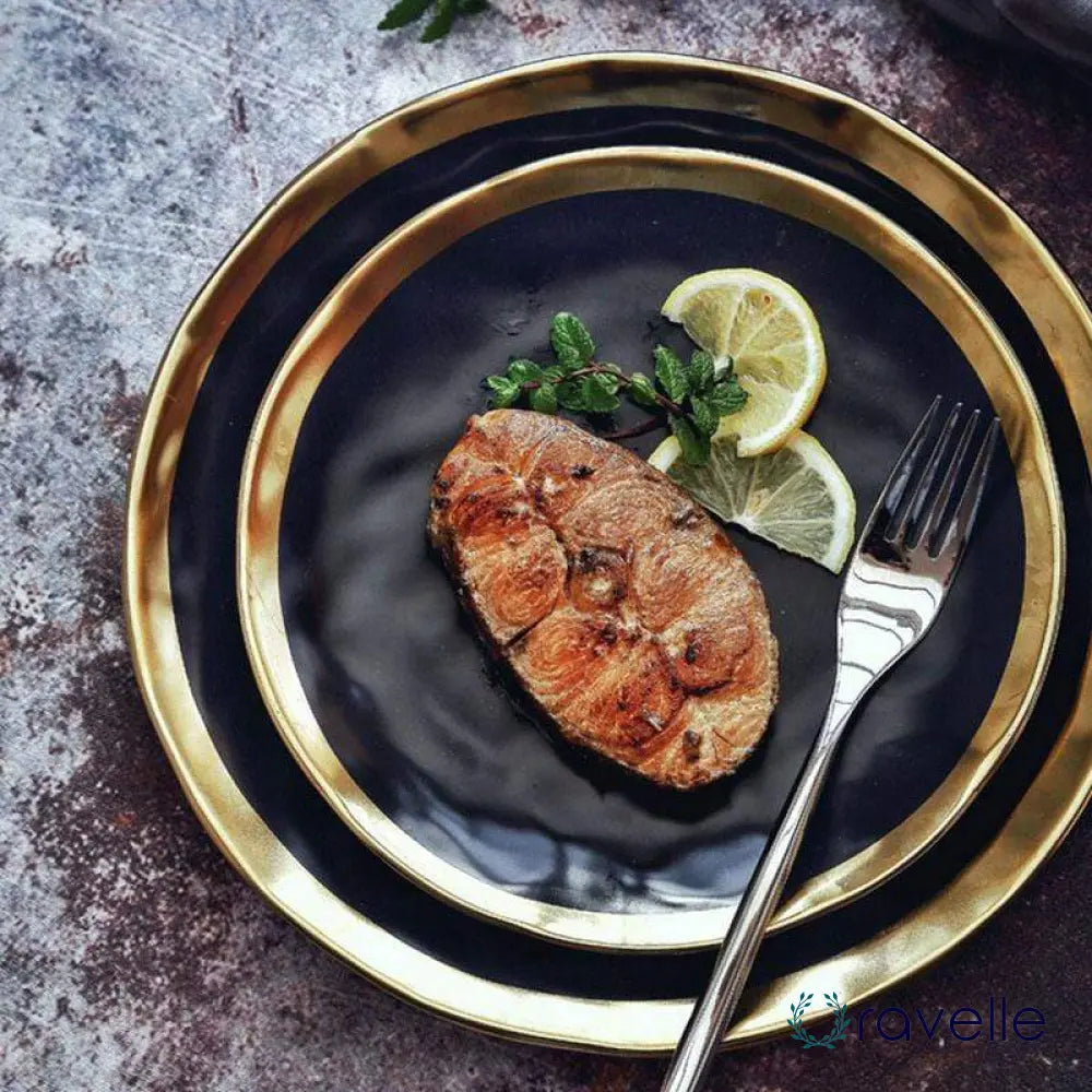 ONYX - Luxe porseleinen borden set met vergulde rand