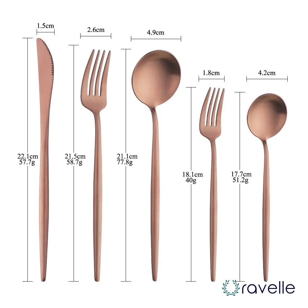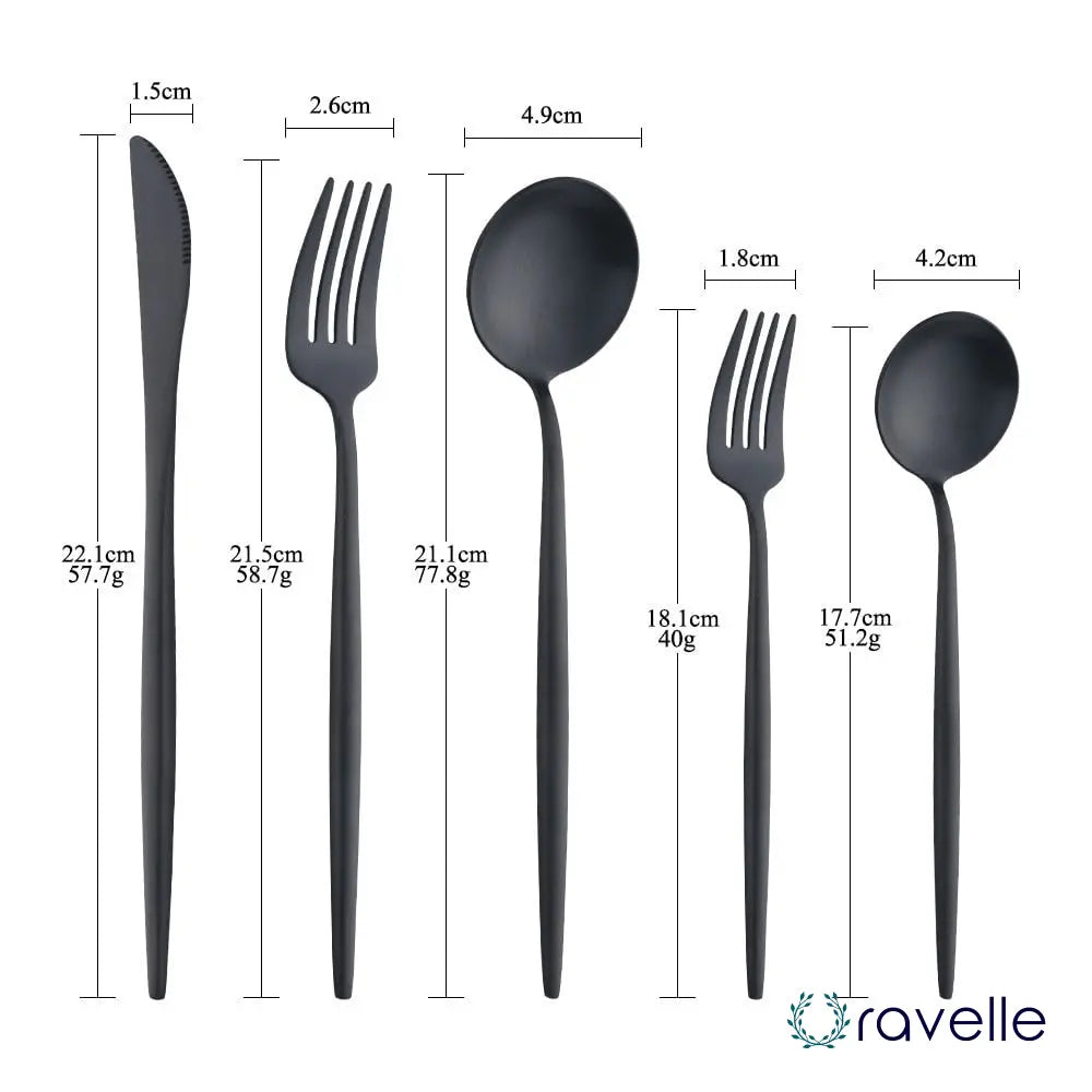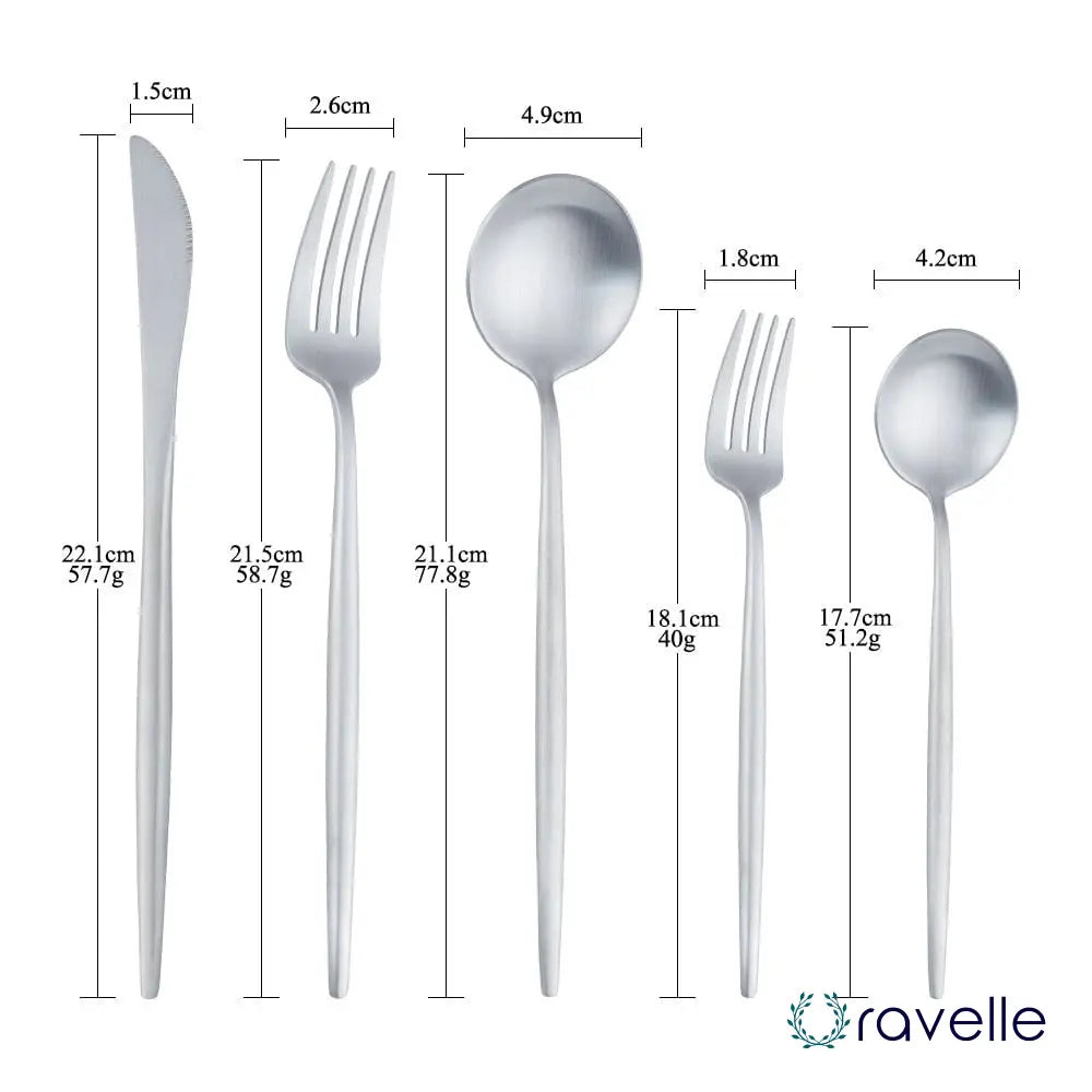 - Set bevat: Vorken, messen, eetlepels en theelepels