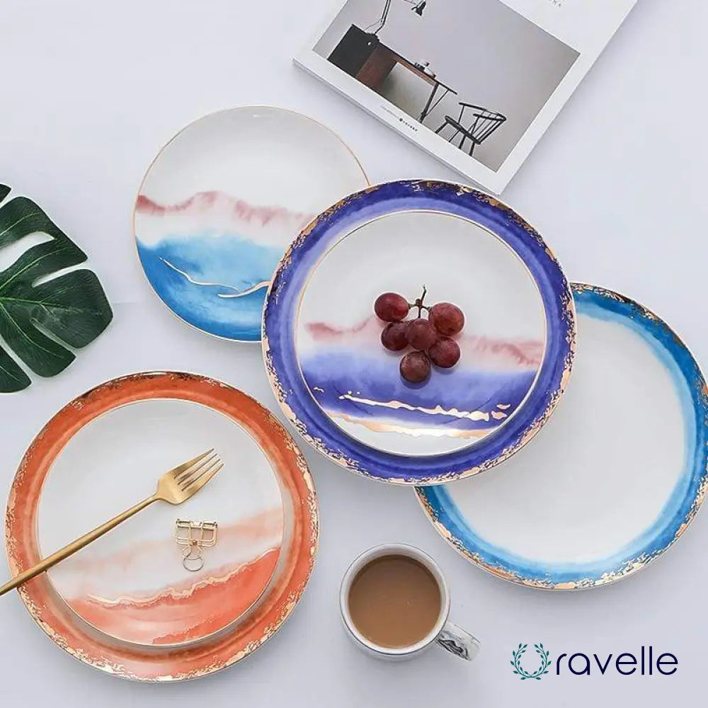 De VAN GOGH collectie biedt vier unieke stijlen – Purple Rain, Teal Dream, Blue Coast, en Orange Exposure – elk een kunstwerk op zich. Gemaakt van hoogwaardig porselein en perfect voor dagelijks gebruik of speciale gelegenheden, zijn deze borden niet alleen functioneel maar ook visueel verbluffend.
